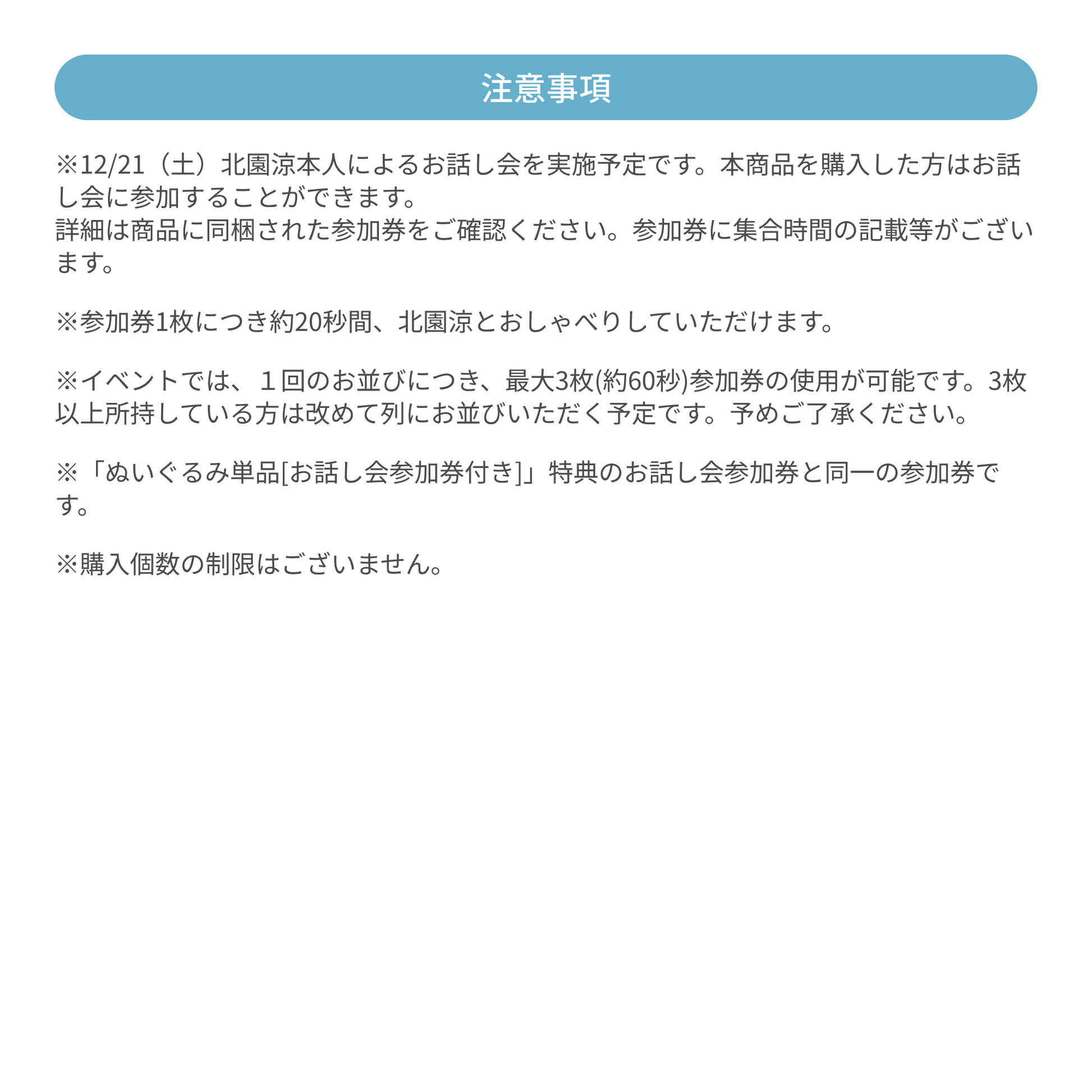 ※「ぬいぐるみ単品[お話し会参加券付き]」特典のお話し会参加券と同一の参加券です。